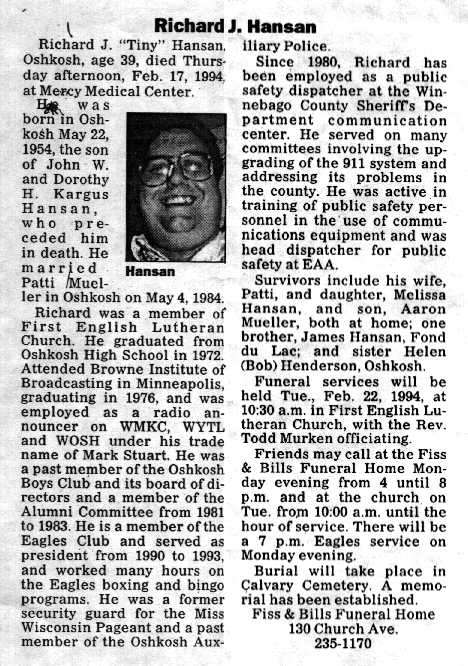 OBITUARY OF RICHARD J. HANSAN5>